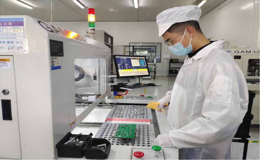 图为黄元龙同学操作全自动PCB分扳机