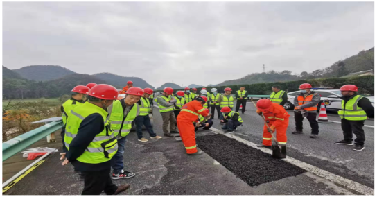 与贵州省铜仁公路管理局、贵州路陆邦公路材料有限公司等联合研发的新型BMH冷拌冷铺沥青混合料应用场景