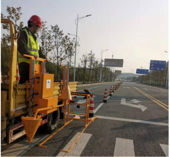 学院研发的半自动安全锥收放装置应用场景
