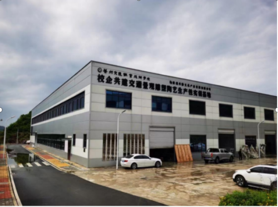 在校园里,有一家贵州交通景观雕塑陶艺生产性实训基地,这是学院艺术设计专业与贵州兴黔文化有限公司合作共建的校内生产性实训基地,基地集“设计、施工、研发、服务、文化传承”全产业链为一体,校企双方整合资源,优势互补,通过“互聘、互兼” 校内外教师实现校企“互融”;通过“师徒制”让学生参与到生产项目中;通过专业基础学习—专业技能提升—创新能力培育—社会综合实践的“四阶递进式”培养模式,让学生进阶学习和到企业服务,让师生共同成长。