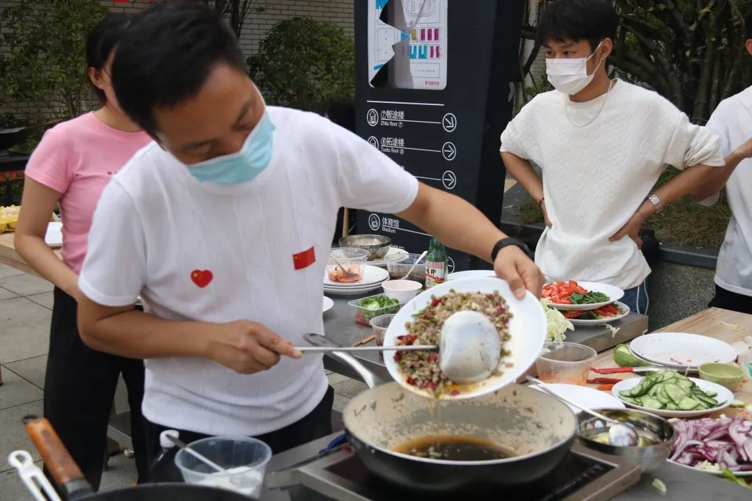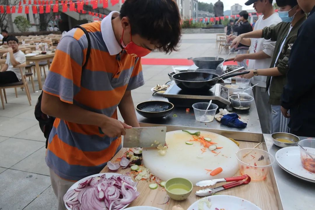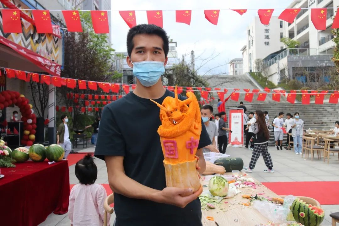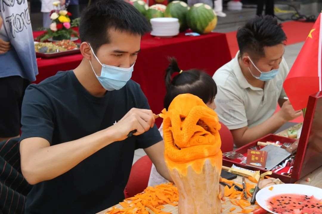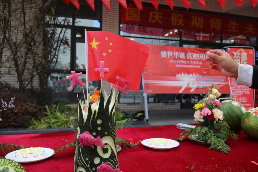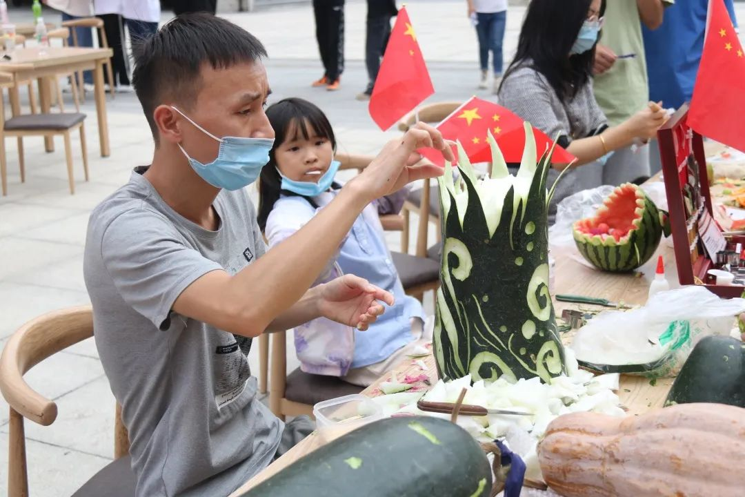 为庆祝伟大祖国七十三周年华诞、喜迎党的二十大胜利召开,润园餐厅在食堂门口举行包饺子、厨艺展示、食材雕刻等系列活动。同学们积极参与用自己的方式,为祖国庆生,为今朝喝彩。