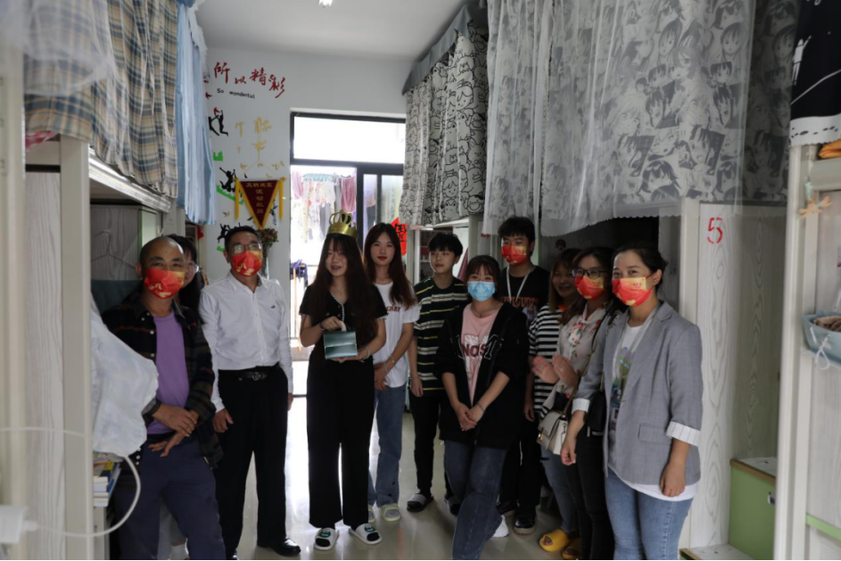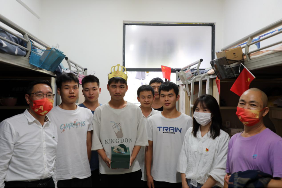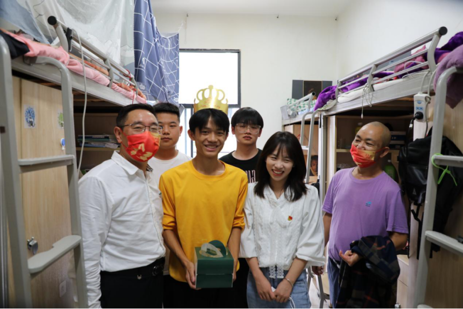 国庆节期间,学院院长吴有富、路桥工程系主任韦生根及在岗教师走访宿舍看望同学们,和国庆当天生日的同学们一起过生日,给同学们送来“家”一样的温暖和祝福。