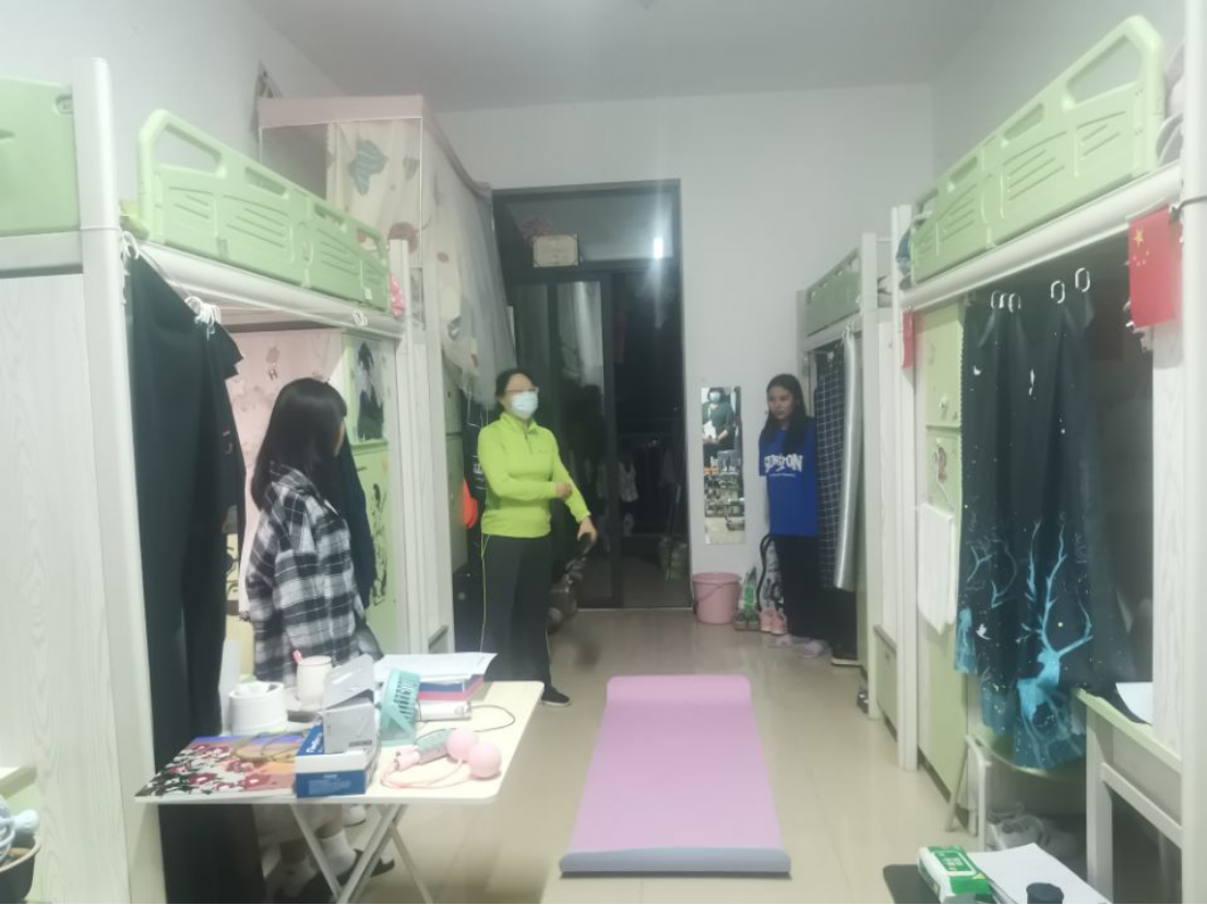 在谈话中,杜娟问同学们上网课方不方便、食堂饭菜味道有没有打折扣等同学们关心的问题,还和同学们一起讨论了在寝室开展一些有意义的活动来丰富课余生活等话题,同学们对杜书记的到来很是欣喜,你一言、我一语的发表自己的观点,纷纷表示会严格按照学院的规定,做好自我防护、戴好口罩,用自己的实际行动来为战“疫”出一份力。
