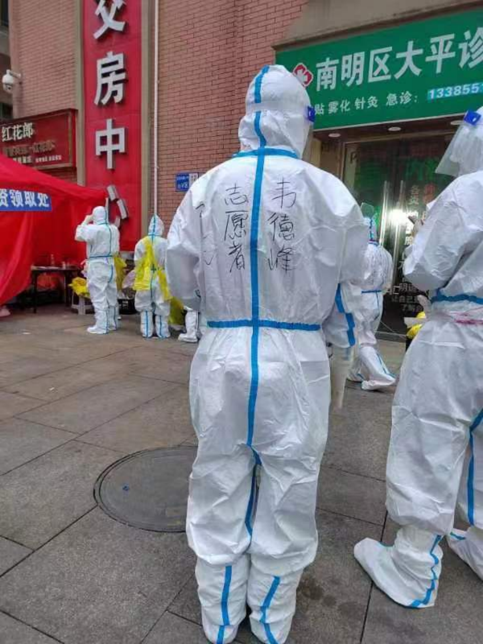 文应财老师在花果园S区参加临时党员小组开展志愿服务,协助核酸检测,分发物资等。