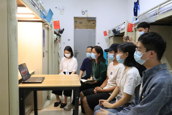 中秋团圆夜,潘云带队,袁仁杰、李萍、焦承东、舒美均五位老师一起走访2021级学生宿舍,给学生们送去殷切关怀和深切慰问。疫情防控期间,同学们虽然不能回家,但有政府和学院的关心,有老师们的陪伴,在视频通话中让家长们看到孩子在学校的生活,转达了学校领导和老师们对同学们的关心和关爱,家长们表示很放心。