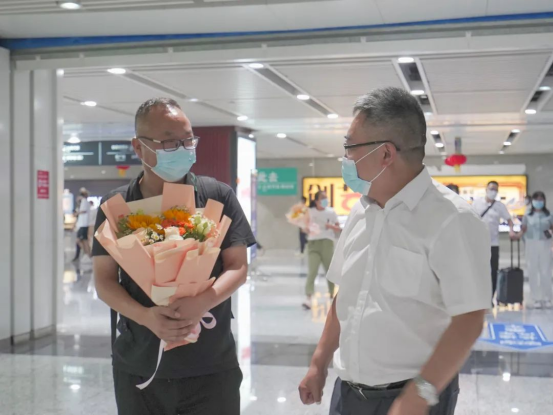 8月25日,2022年全国职业院校技能大赛(高职组)“互联网+国际贸易综合技能”赛项获奖师生抵达贵阳北站,学院党委副书记刘正发一行到贵阳北站迎接,并为师生们送上了鲜花和美好的祝福。