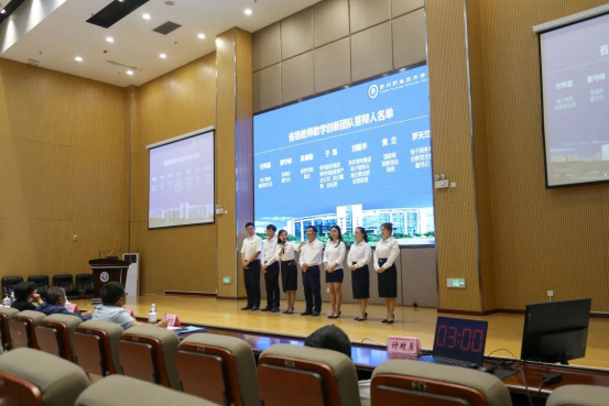 本次现场评审分为现场陈述和答辩两个环节,项目负责人围绕教师教学创新团队项目建设进行8分钟现场陈述,团队成员根据现场随机抽取的题目进行3分钟答辩。评分由专家评分和学校互评组成。
