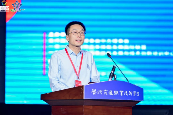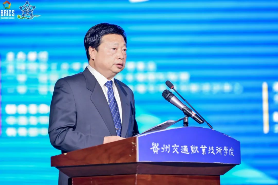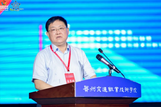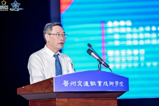 吴有富致辞,他表示,2021金砖大赛城轨服务员赛项大赛的举办,是深入贯彻落实习近平总书记关于加强职业技能培训的重要指示精神的举措,大赛的成功举办离不开一带一路暨金砖国家技能发展与技术创新国际联盟、中国交通教育研究会和捷安高科股份有限公司等各方的共同努力,进一步促进了一带一路暨金砖国家技能发展和技术交流,助力轨道交通运输行业人才培养质量。贵州交通职业技术学院将积极借鉴、吸取此次大赛的办赛经验,广泛开展各类竞赛活动,大力加强交通领域职业技能人才的培养,助力交通领域职业教育的全球化发展。