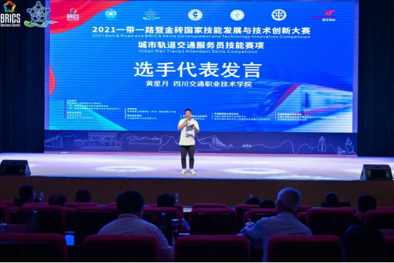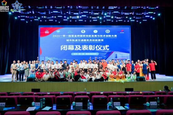 7月16日,2021一带一路暨金砖国家技能发展与技术创新大赛城市轨道交通服务员技能赛项闭幕及表彰仪式在我院举行。