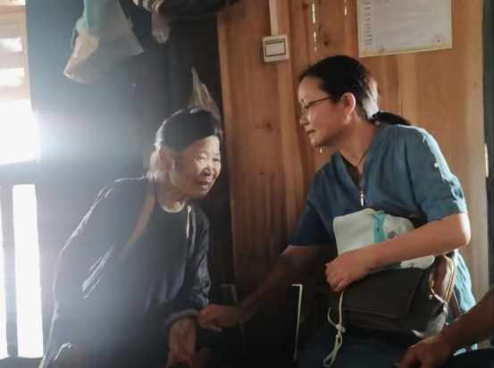 “老人家,我又来看望你了”。在从江县丙妹镇大歹村,培训班学员、院长吴有富正在和结对帮扶的潘你简嘘寒问暖,为她送去了生活用品,帮助解决家中的困难。这是自去年结对帮扶以来吴有富第三次来到她家“走亲戚”。