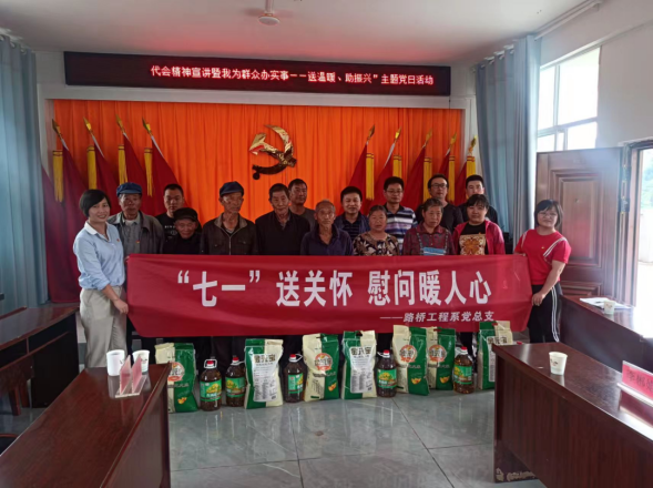 “七一”送关怀,从老党员先进事迹中汲取奋进力量。路桥工程系党总支、基础教学部党总支向马革闹村和侠家米村受过党内功勋荣誉表彰的党员、生活困难党员、50年党龄以上老党员、老干部和烈士遗属、因公殉职党员干部家属、参与越战党员等29名党员同志开展慰问活动,与村里的老党员话家常、聊近况、一起追忆革命工作、战斗经历,畅谈贵州发展,共叙新时代幸福生活,从老党员的先进事迹和崇高精神中汲取奋进力量。