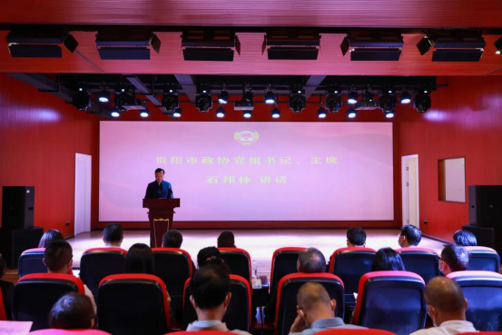 6月16日,贵阳市政协“书香政协”学习宣传贯彻省第十三次党代会精神读书分享活动在我院举行。贵阳市政协党组书记、主席石邦林及贵阳市政协、贵阳市政协机关、贵阳市政协委员代表、清镇市政协代表出席活动。分享活动由贵阳市政协副主席、九三学社市委主委陈雨青主持。