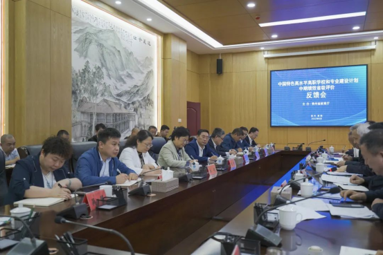 6月13日,中国特色高水平高职学校和专业建设计划(简称“双高”)中期绩效省级评价会在我院举行。教育厅领导和专家组上午听取我院、铜仁职院、轻工职院3所立项建设学校建设情况汇报,下午对我院进行实地考查、访谈和意见反馈。