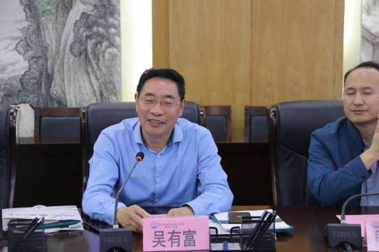 在交流座谈会上,吴有富首先对浙江交工西南分公司一行的到来表示欢迎,并对公司对学院的支持表示感谢。吴有富介绍了学院的发展历程、规划布局、建设成效、办学层次等情况。吴有富表示,职业教育必须面向企业、面向市场,学校的发展离不开校企深入合作,学校希望与企业深入合作,基于共同最大利益建立校企命运共同体。