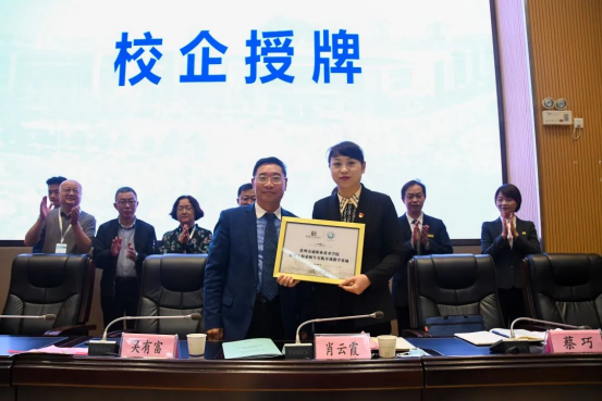 贵州饭店酒店管理集团董事长肖云霞代表集团授予学院“人才培养基地”