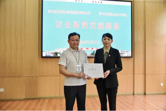 在与会双方的共同见证下,贵州饭店酒店管理集团有限公司与贵州交通职业技术学院续签《校企共建就业实践基地协议》并进行互相授牌。