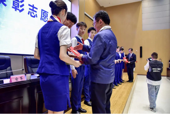 签约授牌仪式结束后,贵州饭店酒店管理集团对学院选派参与省第十三次党代会服务保障工作中表现优秀的梁正婷等6名青年志愿者进行表彰。学院优秀志愿者代表顾琪琪作经验分享。