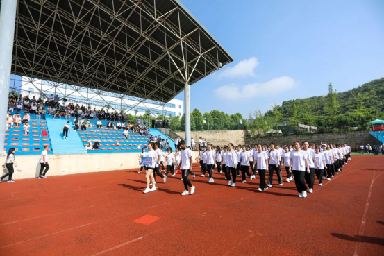 运动员代表和裁判员代表进行庄严宣誓后,学院党委书记张静宣布运动会开幕。随后,全体师生观看了“千人广场舞”表演。