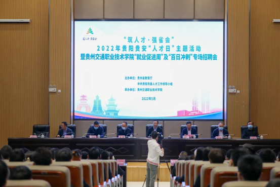 5月17日,贵阳贵安“筑人才•强省会”2022届在黔高校毕业生就业创业行动——贵州交职院汽车小超人微型招聘会在我院清镇校区举行。省交通运输厅人事教育处处长王昌龄、贵阳市政府办公厅副主任刘荣、市交委党委书记、主任童祖强,市交委党委委员、副主任田儒康,市委组织部三级调研员吕静伟,市工业和信息化局园区处处长桑玉龙,学院院长吴有富,副院长詹黔江,招就中心、汽车系负责人以及贵阳公共交通集团有限公司、贵阳比亚迪实业有限公司、贵州通源集团有限公司、奇瑞万达贵州客车股份有限公司、贵州吉利汽车制造有限公司等20家贵阳贵安知名交通企业、汽车企业负责人出席人才推介会。