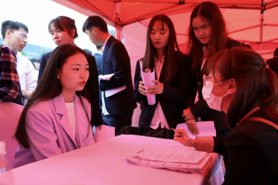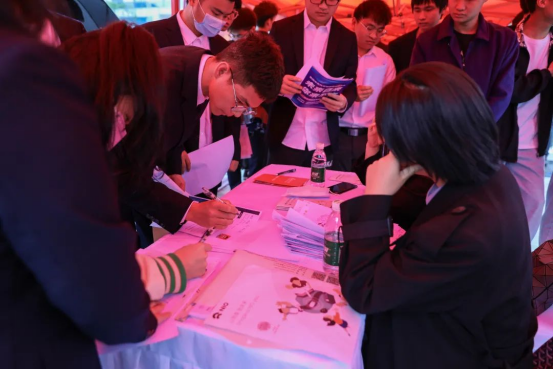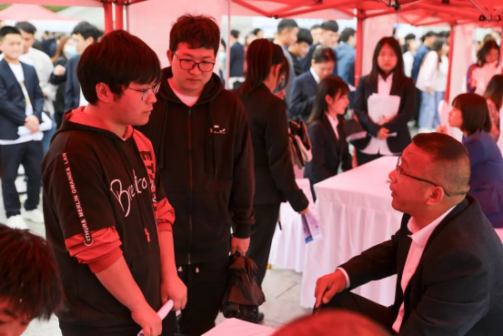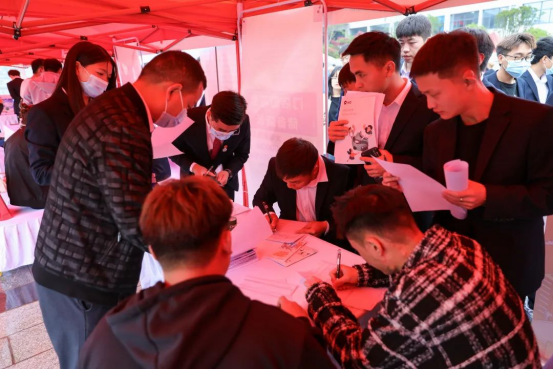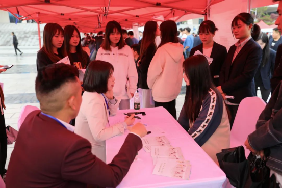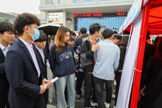 推介活动结束后,企业与同学们移步通途广场,开启了一场伯乐与贤才的相遇。尽管淅淅沥沥的下着雨,也浇不灭大家心中的热情。同学们带着对未来的美好憧憬与期待,自信满满地穿梭于各展位,向心仪的单位递上精心准备好的简历,不时地与企业负责人沟通交流。