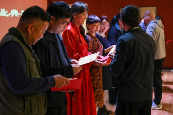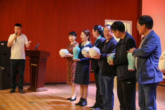 仪式上,夕霞学院第一期学员代表杨树枫分享了自己的学习体会,声乐班、陶艺班、书法绘画班学员分别进行了作品展示。学院为第一期学员代表颁发了结业证书。