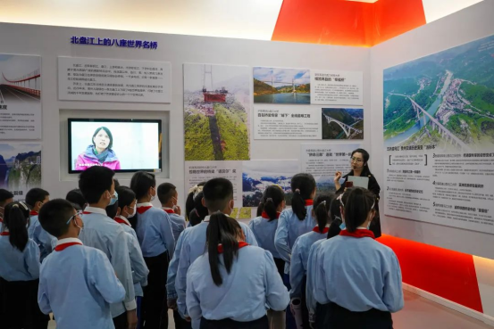 伴随着贵州交通红色教育基地讲解员的解说,同学们纷纷掏出纸笔,记录着自己的所见所闻。“我的本子上记录了在红色教育馆老师讲的内容,还有一些自己感兴趣的桥梁知识”。清镇市实验一小的都钰涵同学在参观红色教育基地后,和同学们分享了她参观中的所思所得内容。