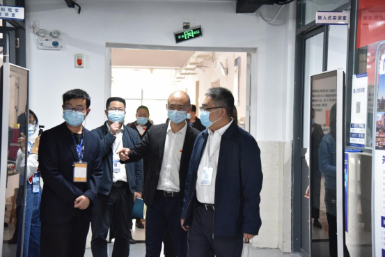 学院党委副书记刘正发、教务处处长雷建海到技能大赛现场进行指导,随后在系部负责人陪同下现场调研了信息工程系智慧交通产教融合实训基地建设情况并提出宝贵意见。