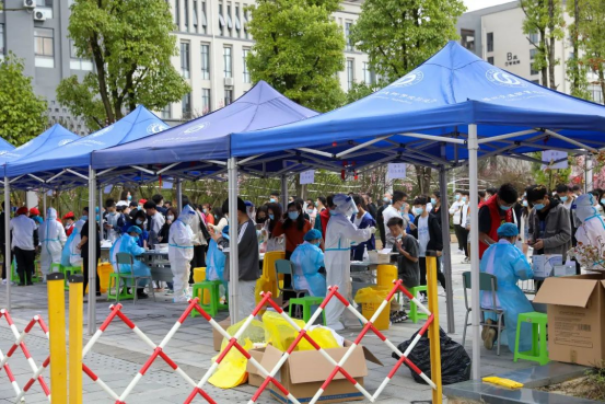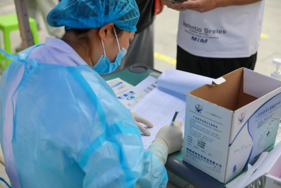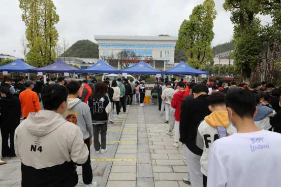 核酸检测现场秩序井然,教职员工和同学们在医护人员及工作人员的引导下,依次排队、扫码、测温、登记、采样,各环节各流程规范、科学、快速、有序。