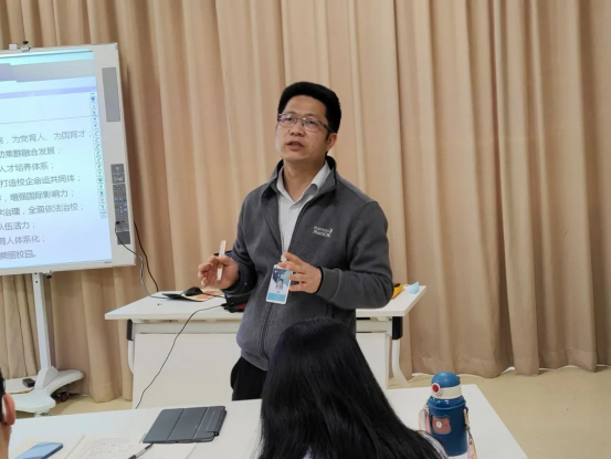 教务处处长雷建海作学院的发展概况介绍及工作生活导引,帮助参训教师了解学院发展现状。教务处副处长杨倩作师德师风建设专题培训,讲解师德师风建设的重要意义、政策法规、突出问题与典型案例,引导参训教师养成良好师德师风。