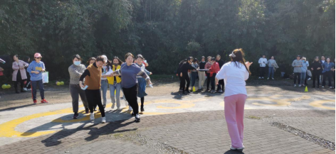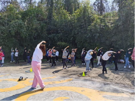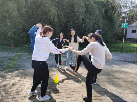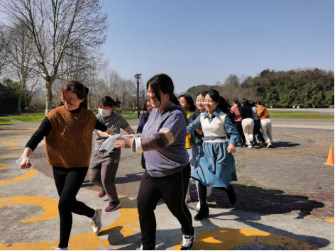 无论是在“一圈到底”“钻山洞”环节,还是在“盲人摸象”“团团圆圆交院人”环节,老师们齐心协力克服重重困难,完成相应的任务,在跑跑跳跳中放松身心,在欢声笑语中凝心聚力。在徒步环节中,老师们结伴同行,一起感受春天的明媚阳光。