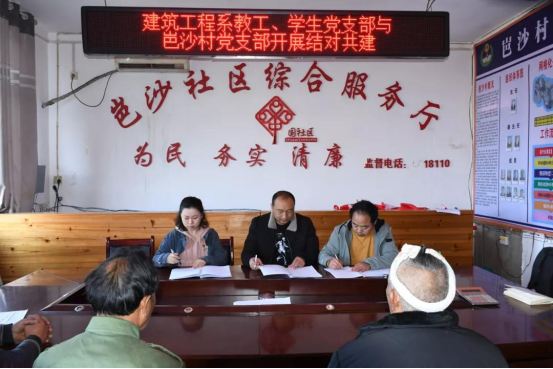 建工系一行还与岜沙村委进行交流座谈,系党总支书记汪迎红为岜沙村老党员们开展了十九届六中全会精神宣讲,建工系教师何洁、田茂林分别开展了题为“学宪法、懂宪法”“安全生产知识”的讲座。在双方党员的见证下,建工系教工党支部、学生党支部与岜沙村党支部共同签署了结对共建协议。