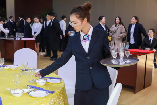 管理工程系2021年院级技能大赛一共组织了导游服务、餐厅服务(中餐)、餐厅服务(西餐)、平面设计、陶瓷胚体成型、航空客舱服务、表演艺术(声乐、器乐)、表演艺术(舞蹈)等8项赛事,吸引了300余名同学参加比赛。除各教研室专任老师担任大赛评委外,每个赛项还从行业、企业一共聘请了10名校外专家担任大赛主裁判。