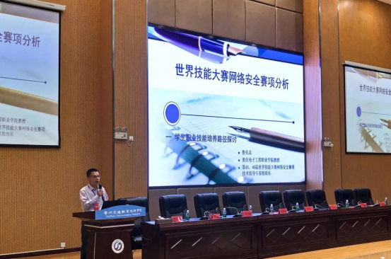 随后,CAD机械设计项目裁判长杨伟群、云计算项目裁判长刘翔、网络安全项目裁判长鲁先志、移动机器人项目副裁判长林佳鹏、货运代理项目裁判长杨佳骏等赛项专家针对各赛项在比赛过程中的注意事项、技术安排、规范化操作等进行技术文件解读和赛项说明,并对各赛项参赛师生的疑问困惑进行解答。