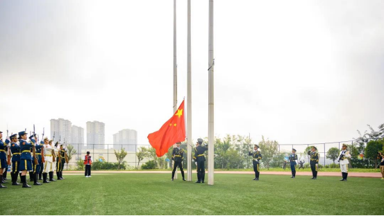 国歌奏响,全体师生面向国旗,举行了庄严隆重的升国旗仪式。