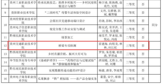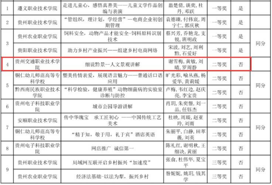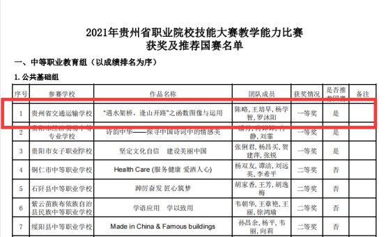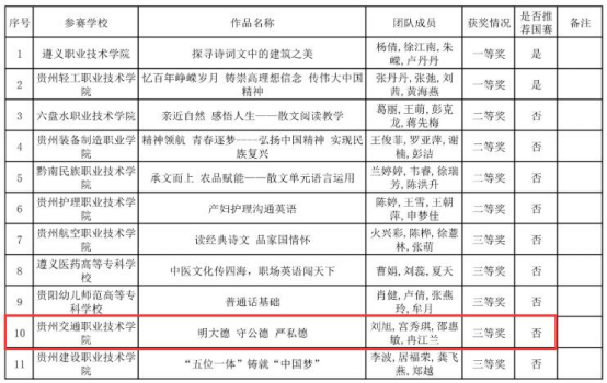 近日,贵州省职业院校技能大赛组委公布了2021年贵州省职业院校技能大赛教学能力大赛比赛结果,学院共获5项一等奖、1项二等奖、2项三等奖,其中五个作品入围2021年全国职业院校技能大赛教学能力比赛决赛。