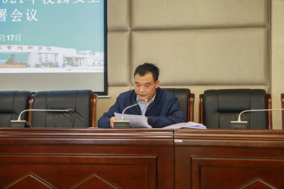 会上,保卫处处长刘文华传达了近期,省教育厅、省安委会等上级部门有关安全工作文件精神。并对2021年春季学期我院安全工作的形势作了全面而深入的分析,对学院存在的安全隐患整改情况进行了通报。
