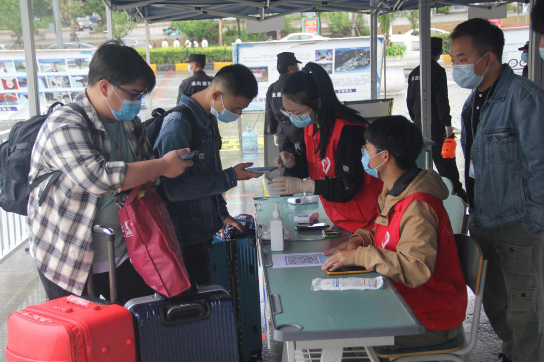 在疫情防控常态化形势下,错峰开学是学校防疫的重要举措,服务队的工作量也因此成倍增加。“去年6月、7月、9月和10月是我们学生返校复学的高峰期,服务队的同学们也主要在这四个月集中为师生们提供服务,累计服务时长超过了1.5万个小时”,服务队临时团支部书记高彪介绍。从扫码测温到行李消毒、从体温异常同学的留观处置到提醒师生做好自我防护、从协助做好重要场所消毒到维护食堂就餐秩序、从协助做好宿舍管理到协助做好防疫物资的领用登记……每一项工作、每一个环节,同学们都兢兢业业,不敢有丝毫的马虎和懈怠。“虽然我们有近300人的队伍,但是要为全院近18000名学生和700余名教职工做好服务,这对平均年龄不到20岁的队伍来说还是一个很大的考验”,院团委书记赵祥全介绍。