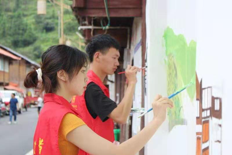 志愿者在晴隆县莲城街道开展乡村文化建设