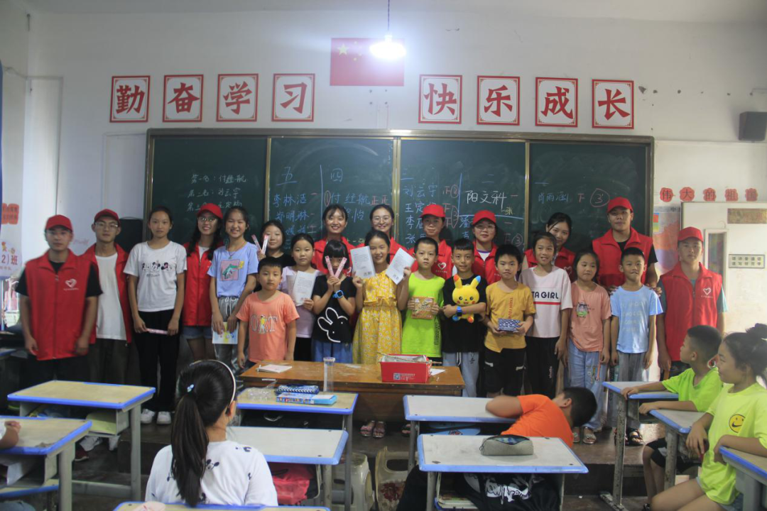 志愿者在遵义市播州区龙坪镇为小朋友们颁发奖励