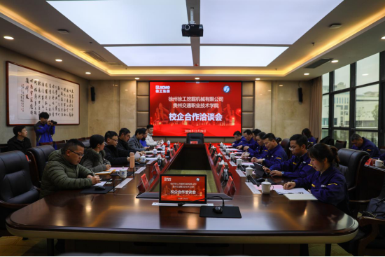 12月29日,徐州徐工挖掘机营销公司同盟军商学院院长助理张松松、贵州恒达鑫机械有限公司董事长梁纶恒一行莅临我院就双方校企合作事宜进行座谈。学院副院长田兴强出席会议,学院科研处、机械电子工程系相关负责人参加了本次座谈。