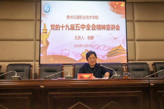12月14日,学习贯彻党的十九届五中全会精神宣讲会在清镇校区举行。学院党委书记张静结合学院实际对全会精神进行宣讲。