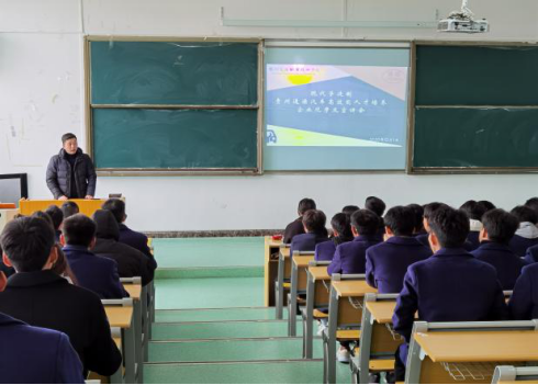 企业参观完毕后,同学们回到学校参加开班典礼。开班典礼由汽车工程系副主任向巍主持,他表示,希望每一位同学在学徒制班都能够认真学习,不辜负学校与企业的期盼,不断进步,成长成才。贵州通源集团招聘培训部副部长杨红进行了企业宣讲,介绍了通源集团的企业文化及晋升机制。