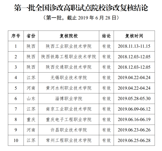 关于公布全国诊改试点院校诊改复核结论(第二批)的通知