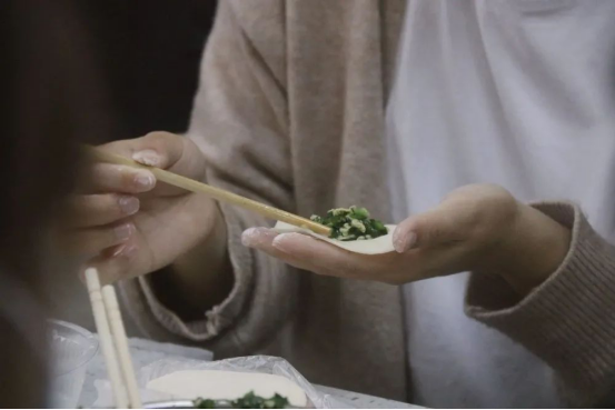 大大小小的饺子形态各异,却都馅料充足,包含着大家满满的热情。同学们互相帮忙,有的同学包不好,其他人也会耐心地教。饺子很快包好了,不一会儿,一盘盘热气腾腾的饺子出锅,第一场饺子“宴席”开始。
