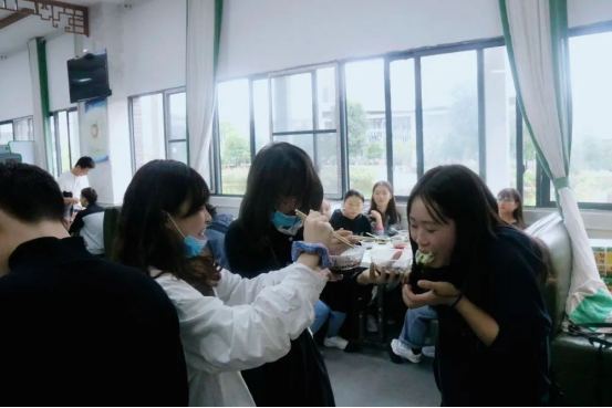 为了增添节日的乐趣,促进同学们之间的交流,学院还安排了很多的趣味活动。大家面对面地将饺子喂给对方,感受来自同校友谊的温暖;有的饺子里还包上了特别的食材和硬币,给吃到的人惊喜。这样的游戏让气氛瞬间变得更加活跃,一桌的女同学多次“获奖”,激动的笑容在她们脸上绽放 。
