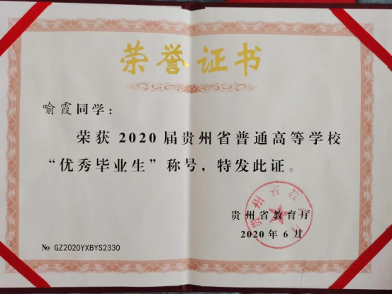 三年来,她担任了团总支副书记、班级团支部书记等职务,荣获了院级优秀学生干部、国家励志奖学金、学院单科奖学金、全国互联网创新大赛三等奖、贵州省“互联网+”大学生创新创业大赛铜奖、首届“勘测股份杯”贵州省大学生桥梁方案设计大赛一等奖等奖励。