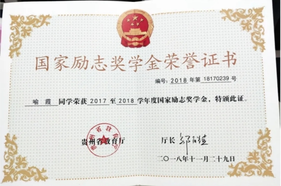 “道路千万条,学习第一条”,求真务实的喻霞,总是以最饱满的热情投入学习,并严格要求自己,立志把每一件事都做到最好。为了专业技能更加精益求精,周末总是能看到她独自一人在办公室刻苦学习专业知识。三年的时间里,她的每一分每一秒都不曾荒废,而她获得的国家励志奖学金和学院单项奖学金等各类奖项就是对她付出的肯定。