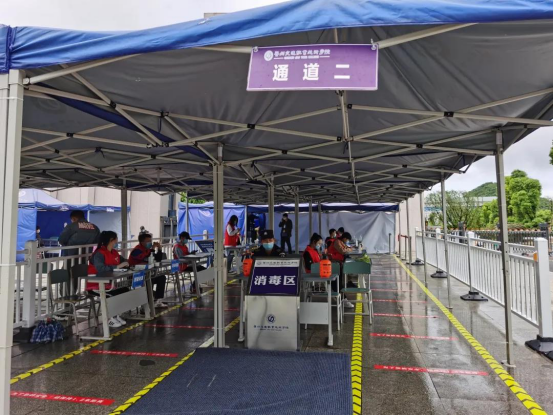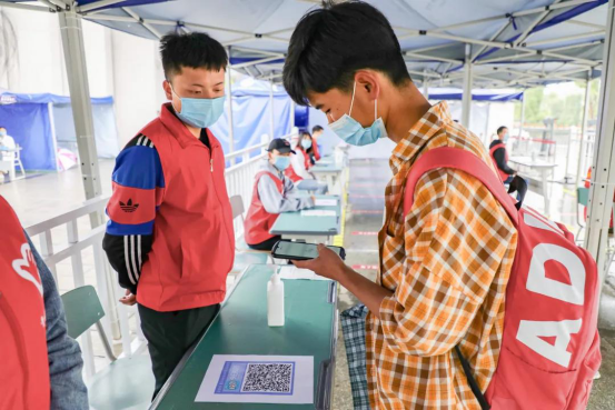 今天,150余名大一年级省外学生作为学院的首批返校学子回到了校园。所有学生在进校门时,需经过验证身份、扫健康码、测量体温、行李消毒、手部消毒、更换口罩、鞋底消毒、核酸检测等程序。所有流程结束后方可到系部报到、前往宿舍。