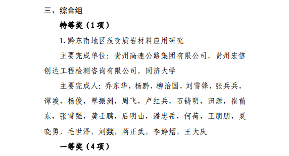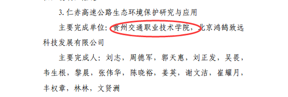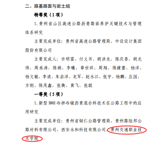 在2019年度“贵州省公路学会科学技术奖”的评选中,我院建筑工程系作为主要完成单位参与的“新型BMH冷拌冷铺沥青混合料技术在公路工程中的应用研究”获路基路面与岩土组一等奖;由我院路桥工程系作为主要完成单位参与的“仁赤高速公路生态环境保护研究与应用”获综合组一等奖。