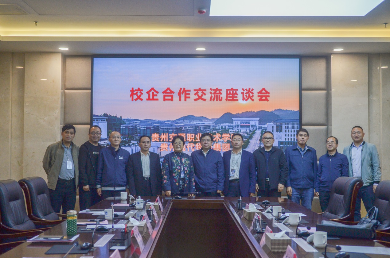 10月21日,贵州现代物流产业集团任仁董事长一行到我校,就校企合作相关事宜进行交流座谈,学院党委书记张静,党委副书记、院长吴有富,党委委员、副院长刘志,总务处、物流系等相关部门负责人出席座谈会。